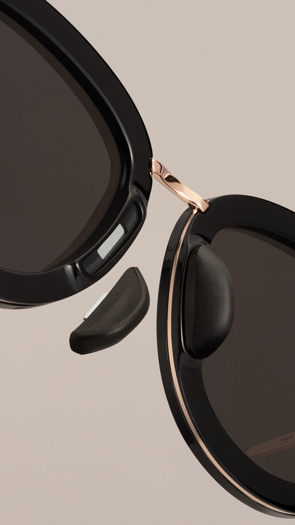 - Glossy rose-gold stainless steel with black glossy acetate accents